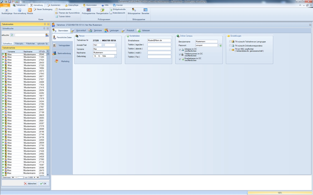 AcademyOne Verwaltung ist die Komplett-Lösung zur Verwaltung von Studiengängen, Kursen, Teilnehmern und Lehrmaterialien.